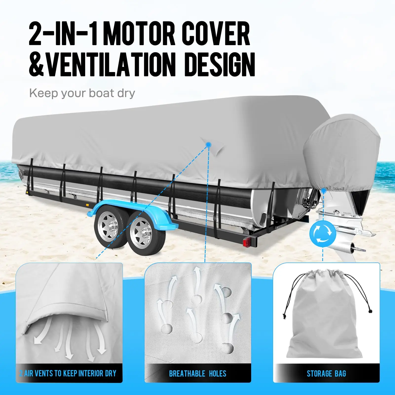 HEAVY DUTY PONTON BOAT COVER: Pontoon Boat Cover 17-20ft is designed to protect your boat from harsh outdoor elements such as sun, wind, rain, snow and debris.